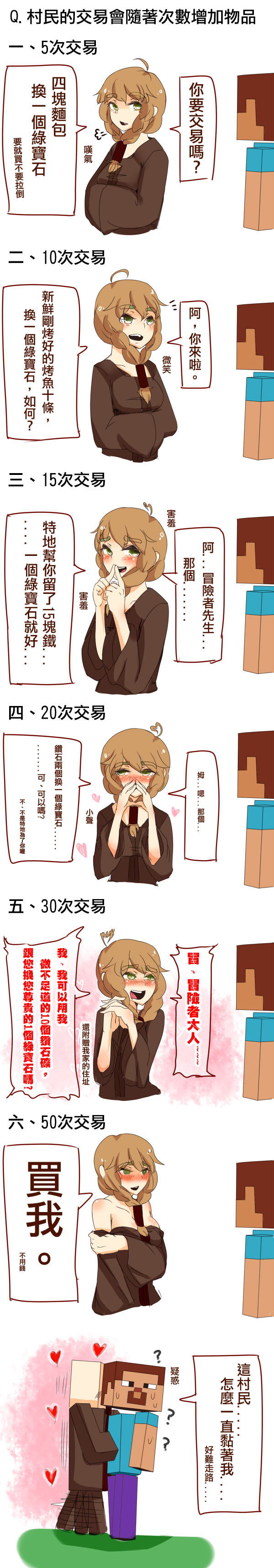 也可以用物品跟村民交換綠寶石。隨著次數的增加村民可交易的物品還會越變越多。